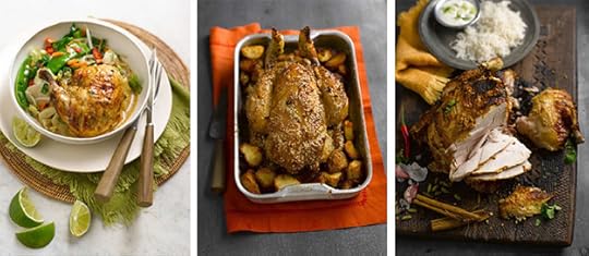 My roast sesame soy honey chicken uses a wonderful sweet and spicy marinade to flavour the chicken which works so well with the honey and sesame glaze. Try to leave the tandoori marinade for as long as possible, to really let the Indian flavours infuse into the bird. This roast Thai green curry chicken is gorgeous for a mid-week supper. Enjoy!"