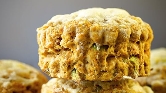 "The brown sugar scones with mascarpone from Baking Made Easy were rich and sumptuous to the extreme and something I still make often, however I have had repeated requests by way of tweets, Facebooks and yells from passing cars, to make some of my dishes a little bit lighter (so that people can have a choice of which one they want to make). I was challenged a little with these savoury scones due to my desire to get the cheese flavour strong enough, but I got there in the end. The wholemeal flour is naturally better for us and, funnily enough, the flour that I prefer. I implore you to eat these fresh from the oven with the teeniest bit of butter to moisten. Utterly delicious."