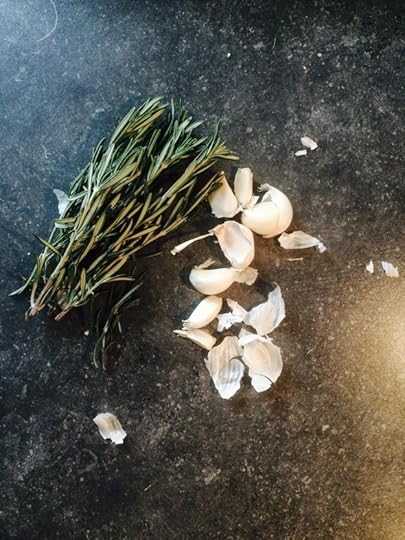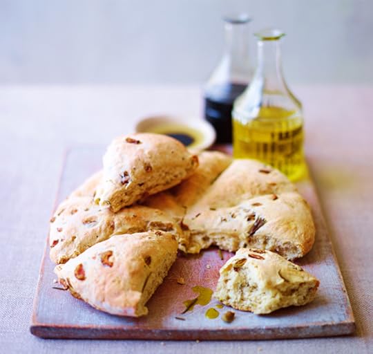 2. Put the flour in a large bowl, with the rosemary, salt, oil and 225ml/8fl oz water. Mix everything well until the dough starts to come together in a ball. Then get your hands in and squidge all the dry bits in, using the bread like a cloth to gather the bits all up.