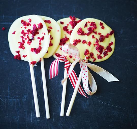 Valentine's gift: White chocolate lollipops with dried cranberries