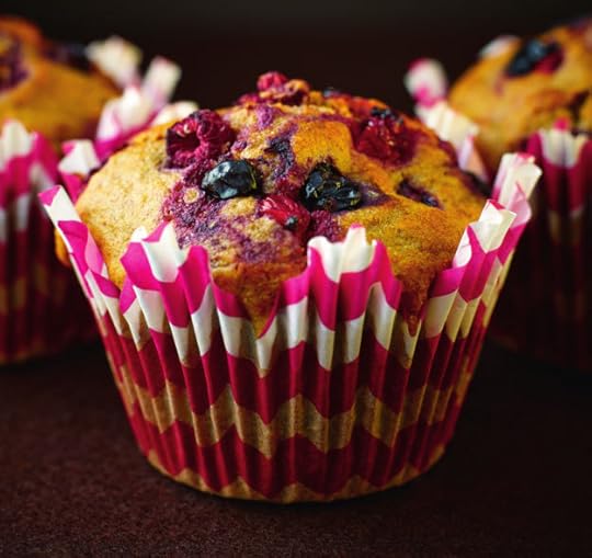 Pouring the mixture into a jug or using two spoons (or I like to use a mechanical ice-cream scoop), divide it among the 12 cases. Scatter the remaining frozen berries evenly over the tops and press them in lightly. Pop into the oven to bake for 20 minutes or until a skewer inserted into one of the muffins comes out clean.