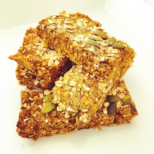 Pumpkin protein oaty breakfast bars with vanilla, maple and spice