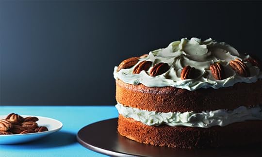 7. Arrange the pecans all around the top outside edge of the sponge to decorate and then serve.