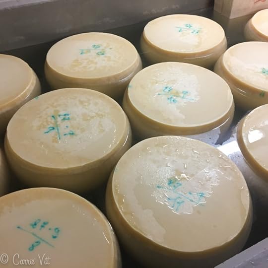 The cheese wheels are then placed in a salt water bath for about twenty days.