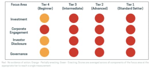 A review of the Fund’s publicly known activities using the ICAP Expectations ladder – an established industry tool, shows partial early stage practice typical of an investor “at the start of their climate journey”.