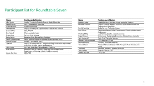 Leaders from government, business, and civil society were joined by special guests from the preceding public forum: Steven Kennedy, Secretary of the Australian Treasury, and Shemara Wikramanayake, CEO of Macquarie Bank, to reflect on developments on climate change in Australia. Participants acknowledged the opportunities and challenges ahead and the need to coordinate in taking action against climate change.