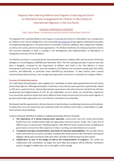On 5 April 2022 the Secretariat of the Asia Dialogue on Forced Migration (ADFM) was pleased to co-convene a virtual workshop with the International Detention Coalition (IDC) as part of our ongoing Regional Peer-Learning Platform and Program of Learning and Action on Alternatives to Detention of Children.