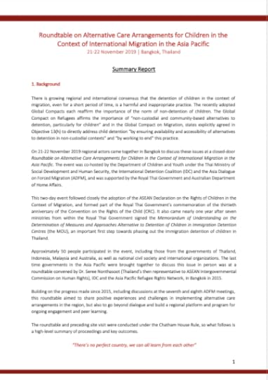 Regional Roundtable on Alternatives to Child Detention | 21-22 Nov 2019 | Bangkok