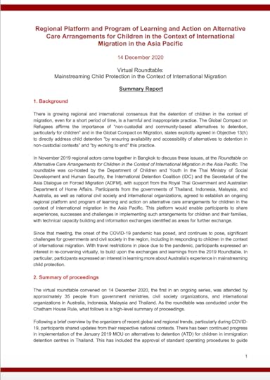 In December 2020 the Secretariat of the Asia Dialogue on Forced Migration (ADFM) was pleased to co-convene a virtual regional roundtable with the International Detention Coalition (IDC), focused on mainstreaming child protection in the context of international migration.