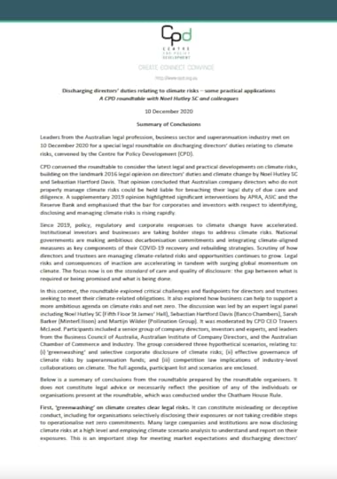 CPD roundtable on directors duties, climate risks and sustainability (2016)