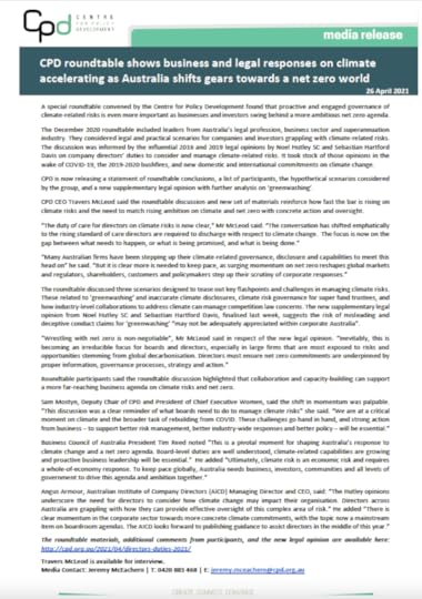 The post CPD releases new materials on directors’ duties, climate risk and net zero appeared first on Centre for Policy Development.