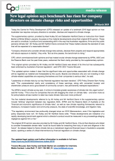 Today CPD has released an update of a landmark 2016 legal opinion on how Australian law requires company directors to consider, disclose and respond to climate change.