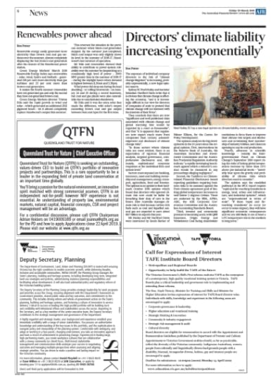 Directors’ climate liability exposure increasing ‘exponentially’, Ben Potter, Australian Financial Review, 29 March 2019