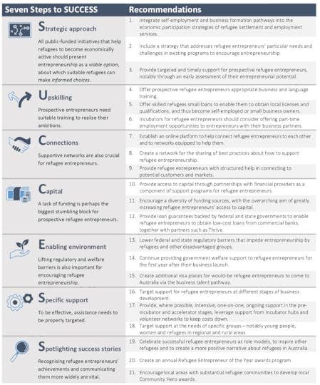 To improve support to refugee entrepreneurs, the report outlines Seven Steps to SUCCESS.