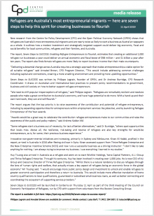 Today CPD and Open Political Economy Network (OPEN) have released a new report, Seven Steps to SUCCESS: Enabling Refugee Entrepreneurs to Flourish. The report was written by Philippe Legrain, founder of OPEN, and Andrew Burridge, CPD Research Coordinator. It draws on Australian and international best practice to outline policy recommendations to government, business and civil society on how to better support refugee entrepreneurs.
