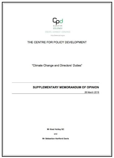 The post Updated Hutley opinion on directors’ duties and climate risk appeared first on Centre for Policy Development.
