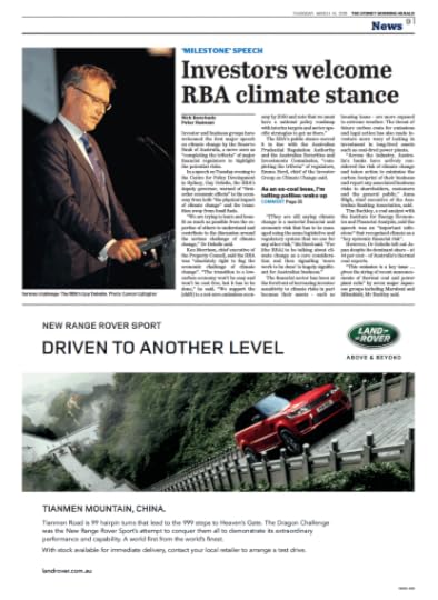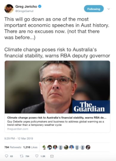 Milestone’ RBA climate speech seen as ‘changing the conversation, Peter Hannam, Sydney Morning Herald, 13 March 2019