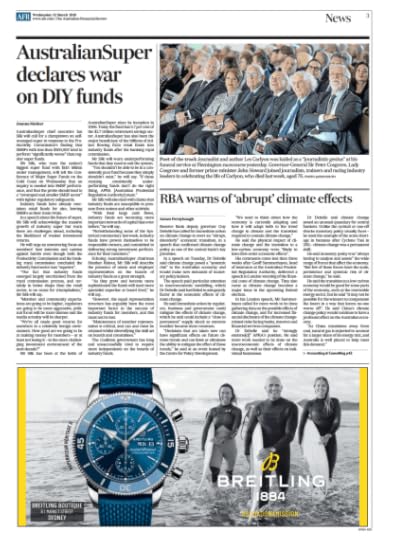 RBA warns on climate fallout, Michael Roddan, The Australian, 12 March 2019