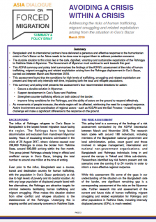 Between March and November 2018, the Secretariat of the Asia Dialogue on Forced Migration (ADFM) conducted an assessment of the risk of human trafficking, migrant smuggling and related exploitation arising from the Rohingya displacement in Cox’s Bazar.