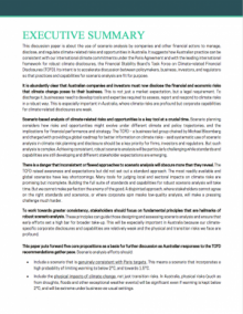 The report shows that, a year on from the TCFD’s landmark report on how businesses should disclose climate change risks, more Australian companies are considering what the climate change and the Paris Agreement mean for their strategies and investments.