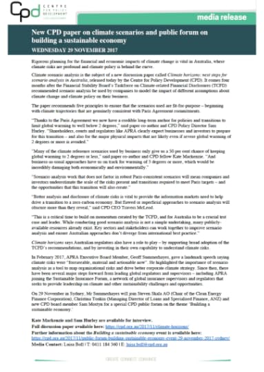 Climate Horizons: next steps for scenario analysis in Australia, CPD discussion paper, Sam Hurley and Kate Mackenzie, November 2017
