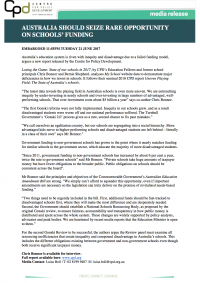 equity in Australia’s schools is declining since the original Gonski Review was released.