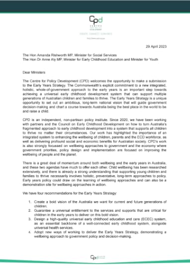 The post Submission to the Early Years Strategy appeared first on Centre for Policy Development.