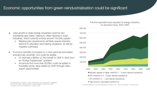 It also indicates the need to seize economic and industrial opportunities in the net zero transition, which can increase Australian economic complexity and create new export industries to replace fossil fuels.