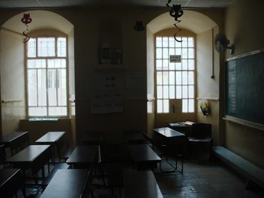 Questa foto ritrae l'aula di una scuola palestinese di Gerusalemme est. Sabato è in programma lo sciopero degli studenti palestinesi di Gerusalemme est (occupata dal 1967). Protestano perché le autorità israeliane vogliono cambiare i programmi scolastici, e cioè togliere i programmi scolastici palestinesi. Benzina sul fuoco, in questi giorni. Ma ve lo racconterò meglio domani.