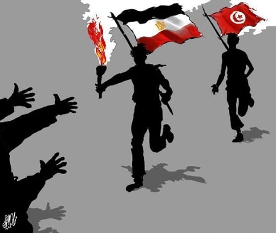 L'immagine di oggi l'ho trovata su Facebook, sulla pagina di un ragazzo palestinese. L'ho messa perché – a proposito di Arabi Invisibili – bisognerà prima o poi riflettere sul contributo che la cultura visiva, dalla fotografia al cinema, dai graffiti alla grafica web, ha dato a questo percorso tutto endogeno. La grafica delle rivoluzioni, per esempio, è stata la dimostrazione di quanto la fantasia e l'arte dei ragazzi arabi sia rimasta misconosciuta. Chissà perché… Molti erano impegnati, a Occidente, a leggere e santificare Samuel Huntington.