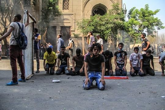 Guardate questa foto. Osservatela bene. Come sempre succede, le immagini possono essere interpretate a seconda del punto in cui si concentra l’attenzione. Vi elenco quello che io vedo. Ragazzi che pregano. Vi posso dire che pregano in una strada del Cairo, fotografati da mosaaberizing, uno dei ragazzi che per tutta l’epopea di Tahrir, tra gennaio e febbraio 2011, è stato in piazza a vivere e descrivere la rivoluzione egiziana. Ragazzi che, a giudicare da come vestono, potrebbero essere ultras di una delle squadre di calcio del Cairo, e/o ragazzi a cui è stata data poca speranza di un futuro decente. Marginali? Forse, ma non è detto. Pregano in una sosta della battaglia ingaggiata con la polizia egiziana nelle proteste di questi ultimi giorni per il video anti-islamico. Lanciano sassi contro i poliziotti che difendono l’ambasciata americana in Egitto.