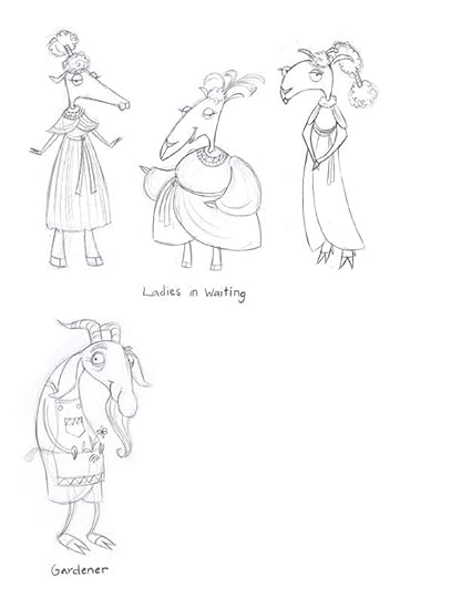 I am working on a new picture book- title to be revealed soon- that I have written and am now illustrating. The characters in the book are all sheep and goats set in an ancient (yet strangely modern) middle eastern style royal court. Right now I'm working on character design- it has been a struggle at times, but mostly a blast! Character design sketches to be posted here soon!