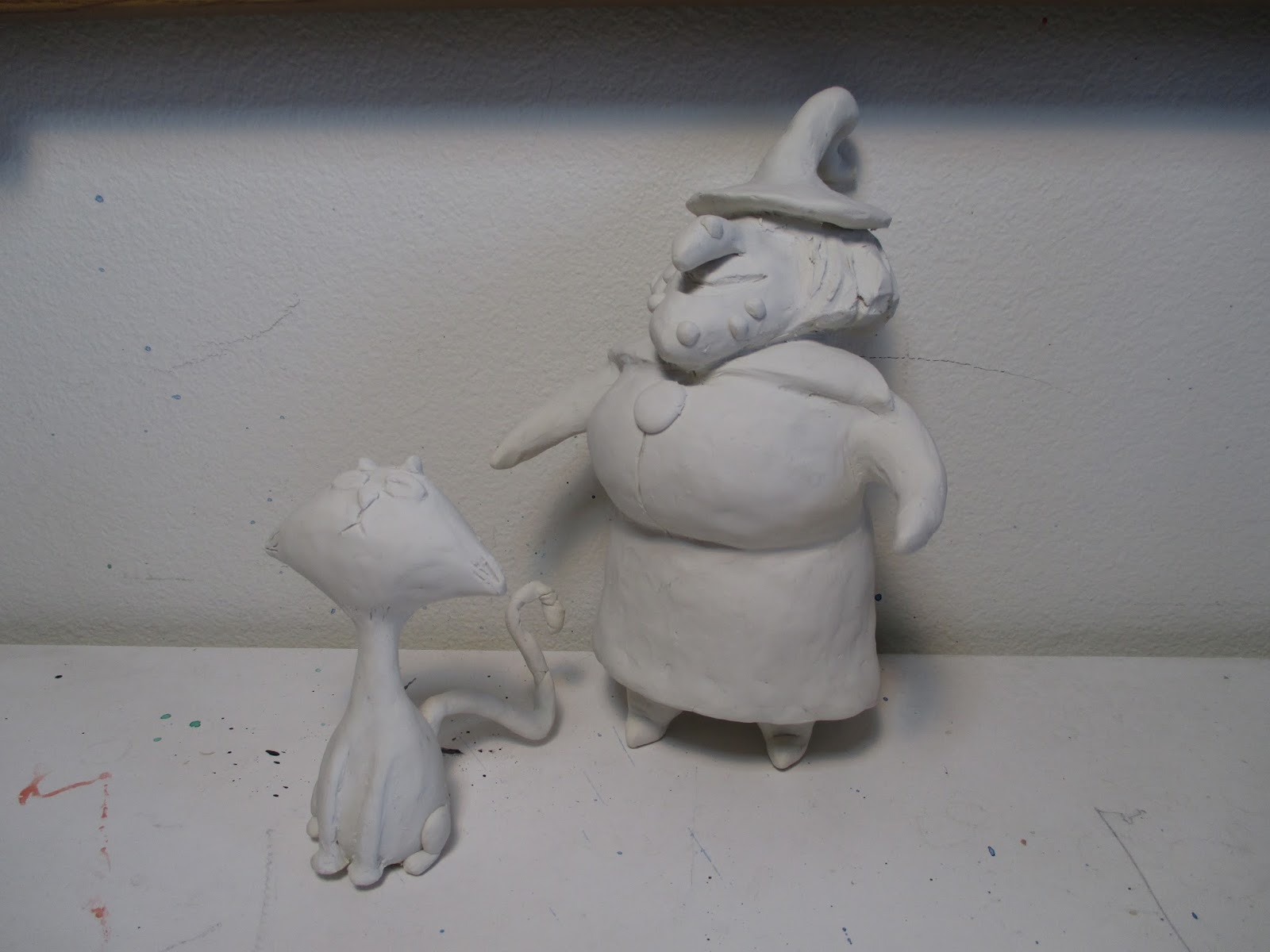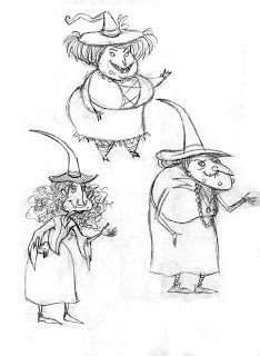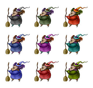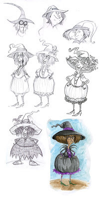 Above is what I finally came up with for my characters. I decided to make Sculpey maquettes of the characters to use for reference- lighting and angles etc. The proportions are not exact, but it gives me a good reference anyway. I will probably paint them soon. I am also going to post a video soon of how I made them. I also started doing some color studies of the main character- Brunhilda. This is so much fun, I am loving this!