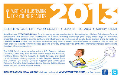 If you are a writer and or an illustrator who lives in Utah (or you want to be) don't miss the annual WIFYR conference which will be held June 17-21 in Sandy Utah! Early registration ends on April 30th, so go check out their website now!