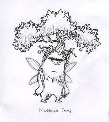 Sometimes for certain illustration jobs, you are asked to compose your illustration in a certain space. In this case, this was a job I did for Triumph Learning. They gave me a very odd shape to work with. I had to be creative in how I fit things into the space. It was kind of fun because the odd shape made me think outside the box as far as my trees and bushes went, and I was able to come up with some fun shapes. If you've never had to do this before, try it sometime! Draw an odd shape, and then illustrate a Nursery Rhyme or another simple story you know and make yourself come up with a great composition within that shape. You may be surprised with the results!