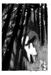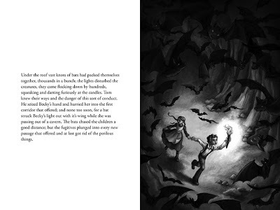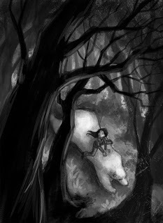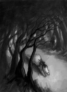 Well, I finished my entry for the SCBWI Tomie DePaola contest this morning. I am feeling a bit frustrated, because when I was painting this, the values were more distinct and separated. I could see the outlines of all the bats, but when I turned it into a jpg, and things got really black. Argh! Oh well. I had lots of fun doing this project. I first did this sheet of thumbnails and ended up going with the idea from C1.