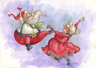 Merry Christmas! This is a watercolor illustration I did for a Twitter art gift exchange. It's called "We Wish You a Swinging Holiday."