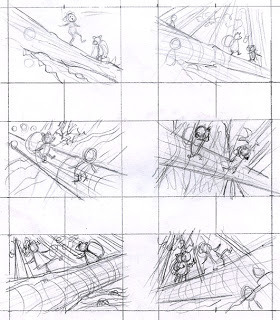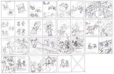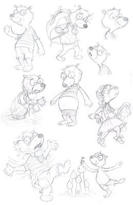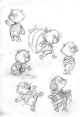 Martha gave us the manuscript for a book called B.Bear and Lolly. We were to design the characters and show them in a number of poses. Then we were to figure out the pacing of the book, and then to map out the entire book in thumbnails. Above is what I came up with for the first stage.