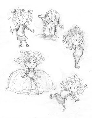 Martha gave me great feedbacck on my character sketches. On the little girl character, Lolly, she said to make sure her anatomy was consistent and proportioned the same throughout all the character sketches. On the bear character, B.Bear, she said he looked way to old- he was supposed to be 5 years old in the book. She also said they both looked way to old in the color study- which is very true! Her comments were very helpful! Above is what I came up with for the second character sketches.