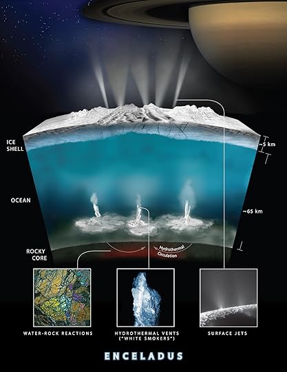 Hydrogen gas could potentially provide a chemical energy source for life, and it’s pouring into the subsurface ocean of Enceladus from hydrothermal activity on the seafloor. Ample hydrogen means that microbes – if any exist there – could use it to obtain energy by combining the hydrogen with carbon dioxide dissolved in the water.