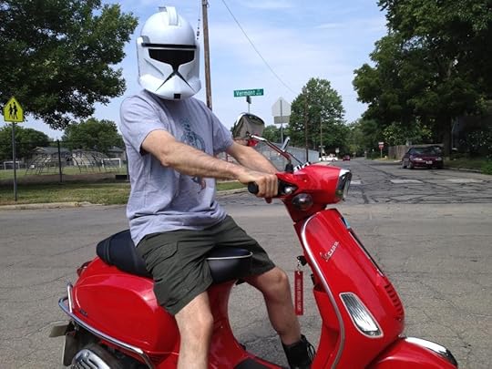 And I leave you with this, me wearing my new scooter helmet (full description of safety mods to come):