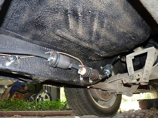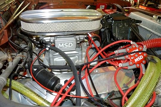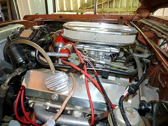 Yes, it's still in my driveway. Foolish me, I pulled the carburetor, old distributor, and associated parts a while back, WHILE IT WAS STILL OUTSIDE. In the lovely spring weather, that seemed like a good idea. And I thought I'd have the EFI system installed before the start of the Science Fiction Summer program. Ha. I should always remember the formula for how long something takes to do compared to the estimated time: "Double it and add 30." Now I'm dehydrated, dying of heat, covered in mosquito bites, and bruised from lying on pebbled in the driveway. Someone please remind me that I like to do this stuff.