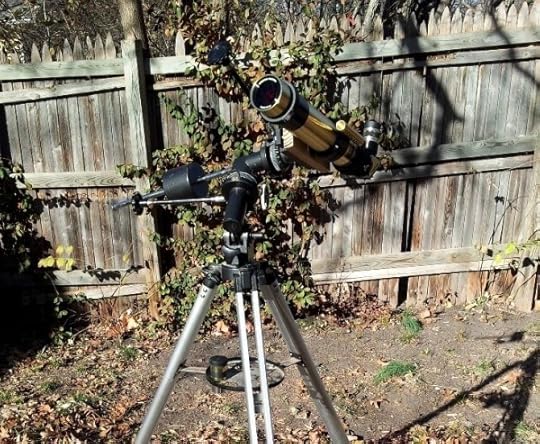 I finally found a little time to finish mounting my "new" Solarmax hydrogen-alpha telescope onto an antique mount, so I can actually use it. And WOW does it work great! Here it is, on an old German equatorial mount that I found abandoned on the side of the road last summer (Seriously. It used to hold a 4" Newtonian reflector. Anyone want an old, barely usable telescope?):