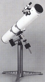 You can find many other types of reflectors out there, but the Newtonian design (attributed to Sir Isaac) used to be the most popular, and provides the greatest light-gathering power for the dollar. It uses an open tube with a primary mirror opposite the open end, and a secondary mirror set at a 45° angle, which bounces the light into the eyepiece set at the top-side of the tube. Here's a nice example of a useful Orion AstroView 6" Newtonian reflector on a German equatorial mount: