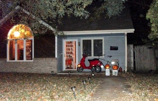 Some amazing costumes! Perhaps my favorite was a robot made of cardboard, painted green. My favorite line, when a group of pre-teens were standing in the doorway picking their treats: "Wow, I love books! It's like a library in here." I built a story-and-a-half bookcase in my living room, which you can kinda see in this photo: