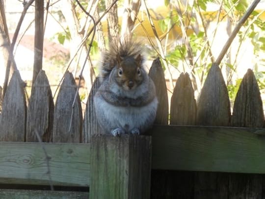 There's this charming little squirrel I've named Spot (because he bears a light-colored spot on his back; clever, I know) who is not terribly afraid of people; in fact, when we toss seeds onto the back patio (in response to his begging), he doesn't run away but instead waits while his siblings dash off to safety. In fact, Spot seems as if he wants to come inside. Lately, I always close the garage door behind me when I enter.
