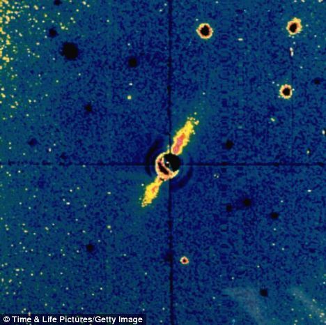 These photos show the protoplanetary disc of gas, dust, and rock orbiting the star Beta Pictoris, 63 light-years away from Earth. This very young solar system is only about 12 million years old and shows how our own Solar System looked 4.5 billion years ago.