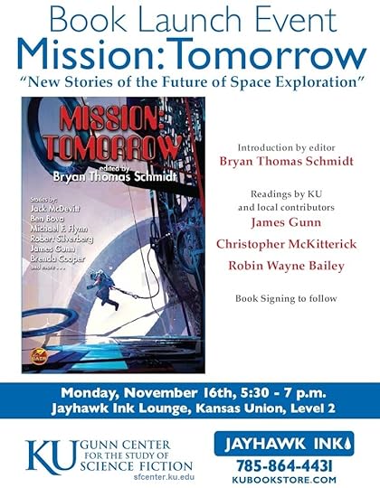 Because my story takes place near Jupiter, I'm making my contest simple.So, want to win a free copy of the Mission Tomorrow ebook? Here's how: Share your favorite image, video, story, or other cool thing about the planet Jupiter. Can be science-ey, science-fictional, or whatever most toots your horn. I embrace multitudes.Post on a social network we both use. I'm on Dreamwidth, Facebook, Goodreads, Google , LiveJournal, Tumblr, and Twitter. Mention the new anthology of space-exploration stories, Mission Tomorrow . Tag me in your post so I get a notification (and can therefore see your post!). My day-job combined with a writing career and running the Gunn Center makes me perilously busy, so unless I'm tagged I miss tons of great stuff.This is an ongoing contest! I'll be giving away a copy to my faves through the week of the release event (at Jayhawk Ink Bookstore at the University of Kansas), November 16.