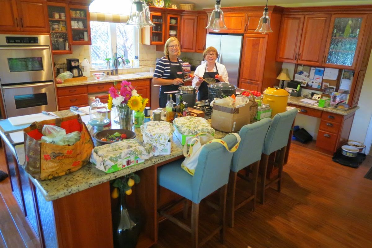 Yesterday my friend Linda and I spent most of the day in her once immaculate and well-outfitted kitchen. We strapped on our aprons and set to work.