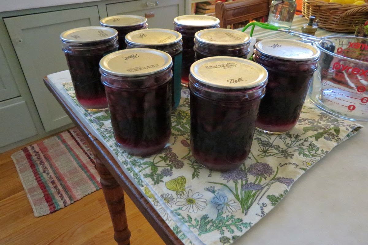 This is one of my midnight experiments–whole grapes and sugar canned for a juice concentrate. We'll see how this turns out. It must age for a month before I open and test one.